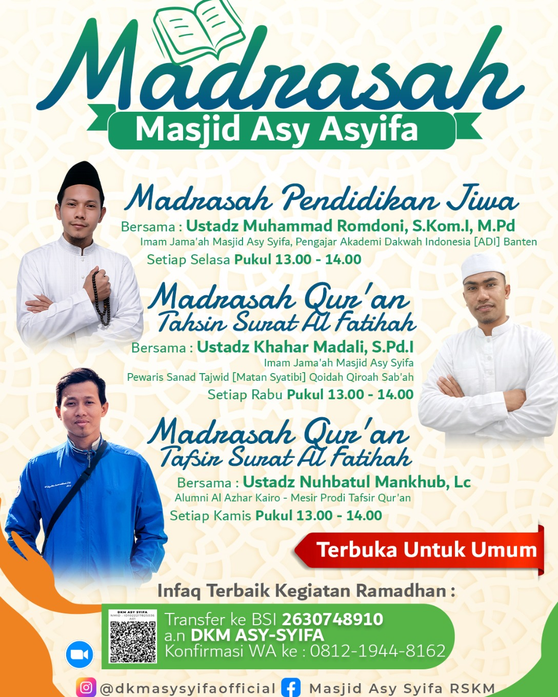 Madrasah Masjid Asy Syifa menghadirkan rangkaian kajian istimewa bersama para asatidz terbaik: