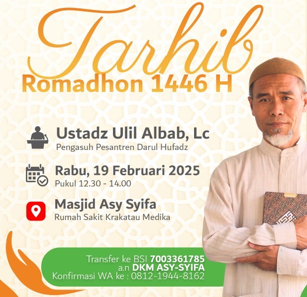 Jangan lewatkan kesempatan menambah ilmu dan keberkahan di bulan suci ini. Catat tanggalnya dan jangan sampai terlewatkan ya Sobat. Dan bagi Sahabat KM yang ingin berinfaq/sedekah bisa melalui transfer ke nomor rekening BSI 7003361785 an DKM Asy-Syifa & konfirmasi ke 081219448162 (WA).