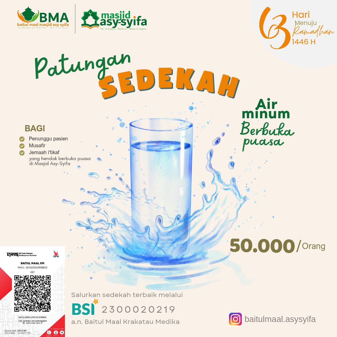 Mari berbagi kebaikan, hanya dengan Rp. 50.000,- / orang kita sudah bisa patungan menyediakan Air Minum untuk berbuka puasa